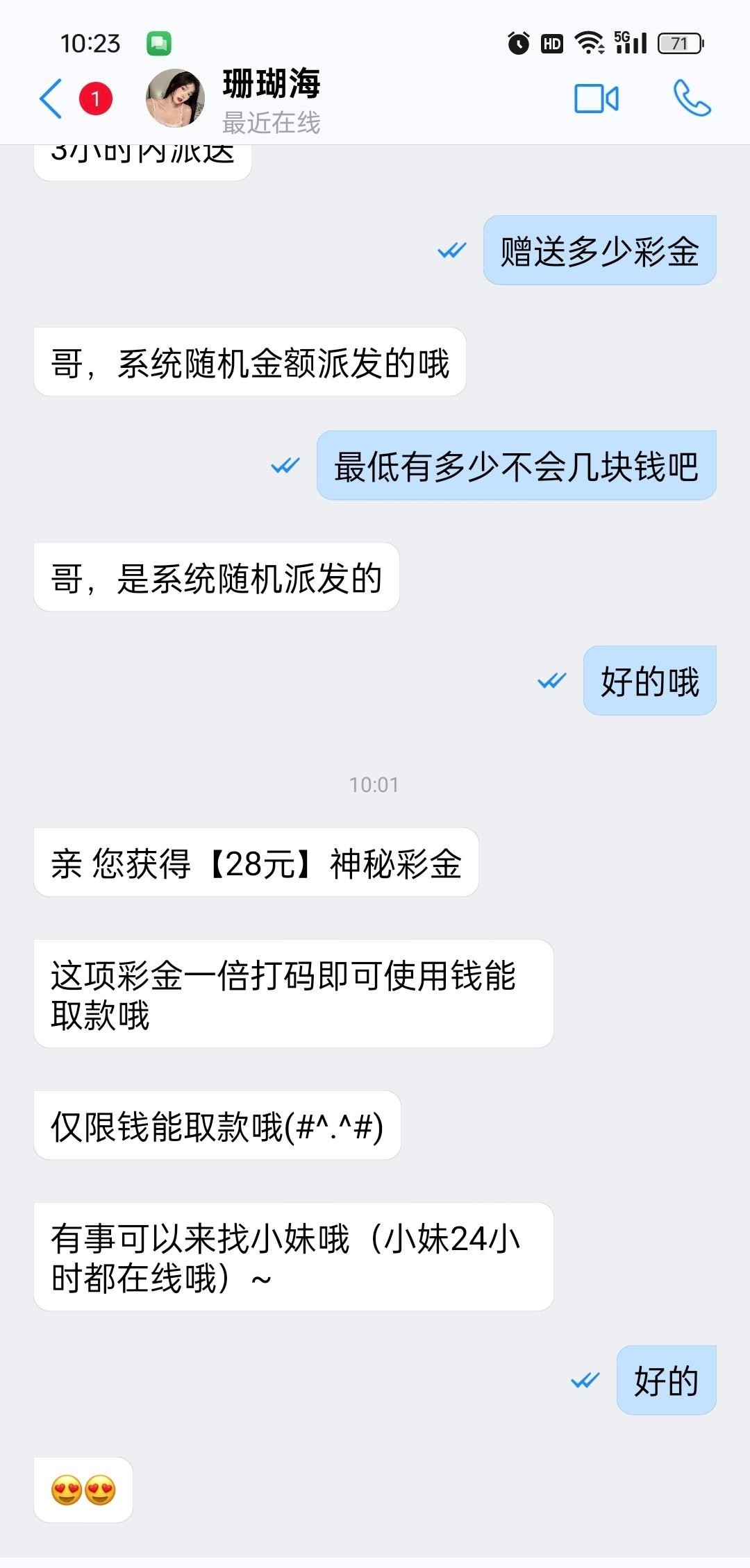 看看消息里面有吗,今天刚收到的,我等级是v3,联系了专员送了28元,消息里面是加letstalk客服,我找在线客服下载的66聊天软件家的专员送的,不知道能不能碰瓷,没领到的老哥别中出我