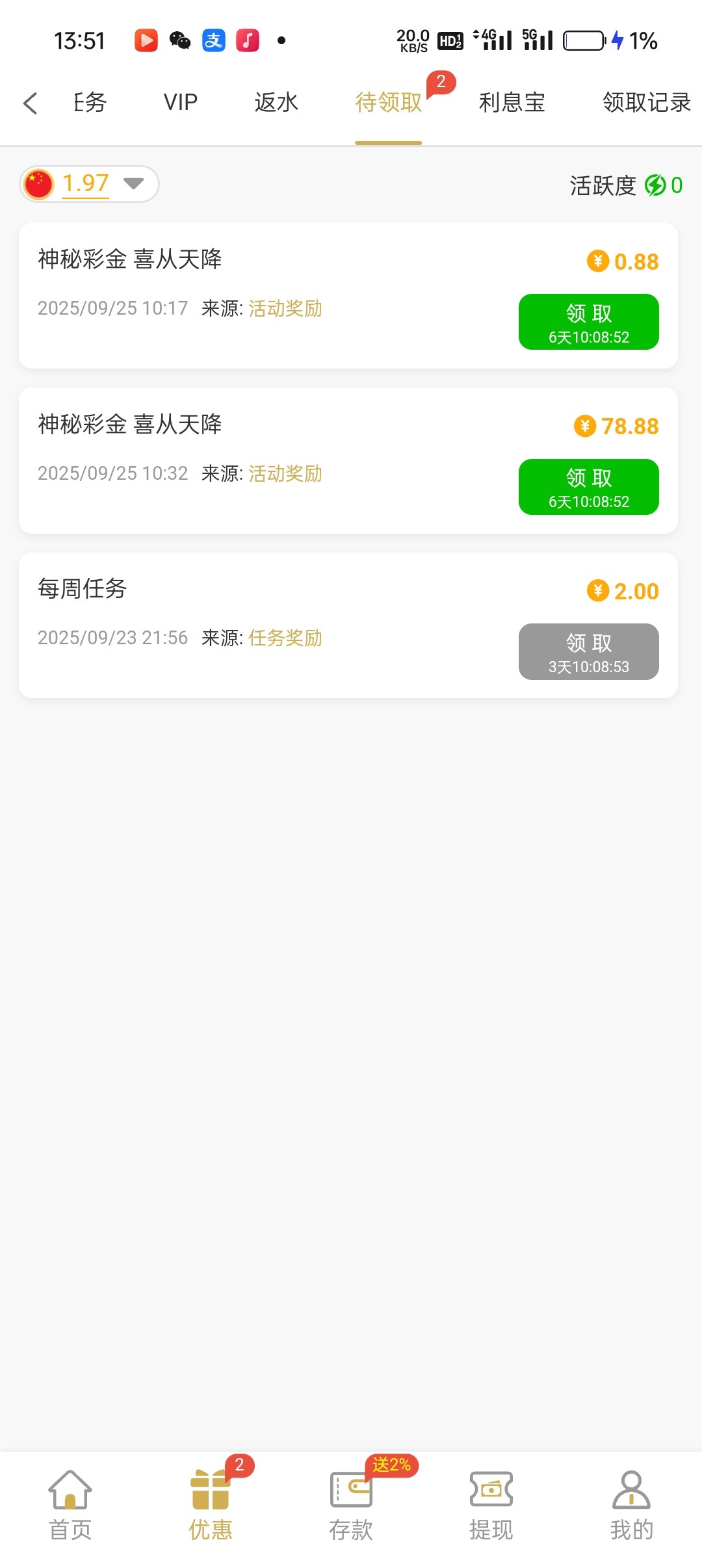 有的可以去看看神秘彩金,刚登陆就看到了