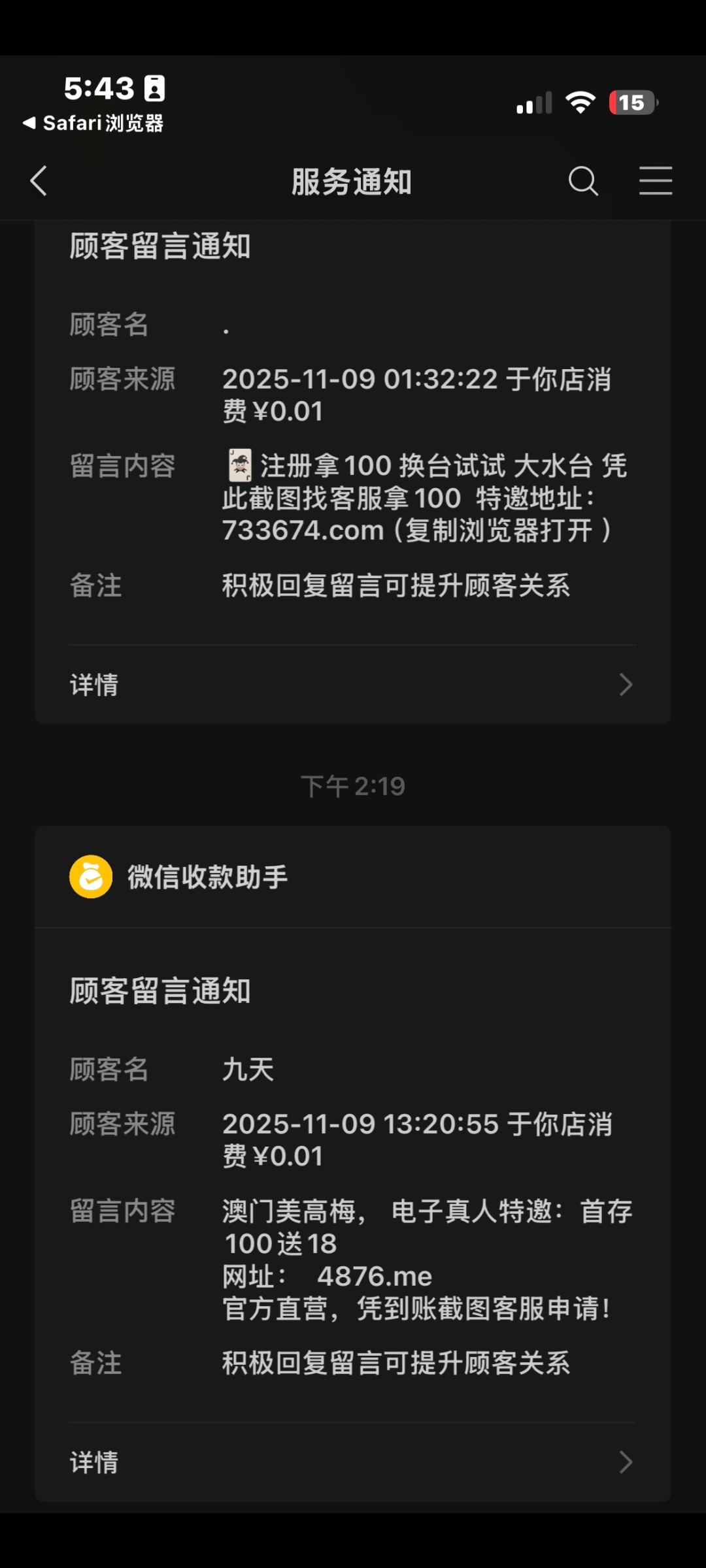 我这种微信的很少偶尔一两个