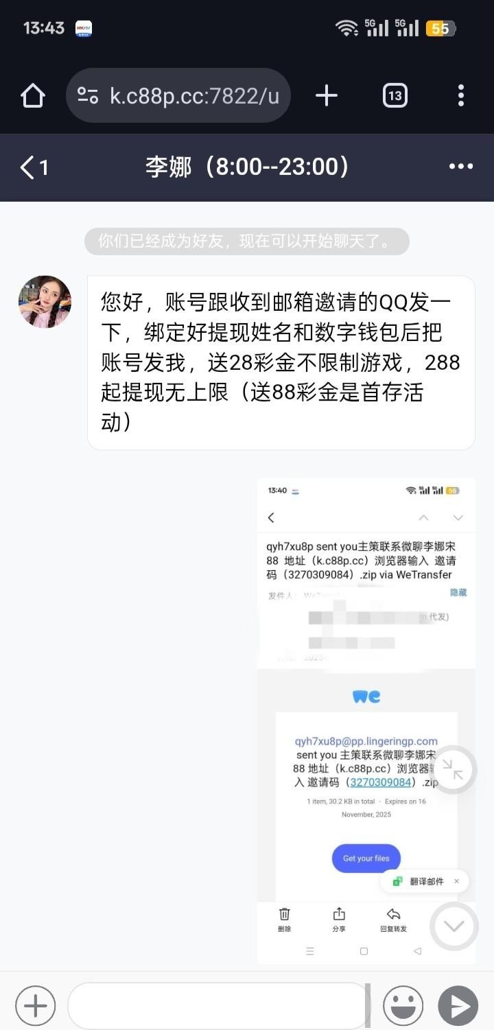 我邮箱收到的,不知叫啥彩票,送了28体验金,我没打出来k.c88p.cc