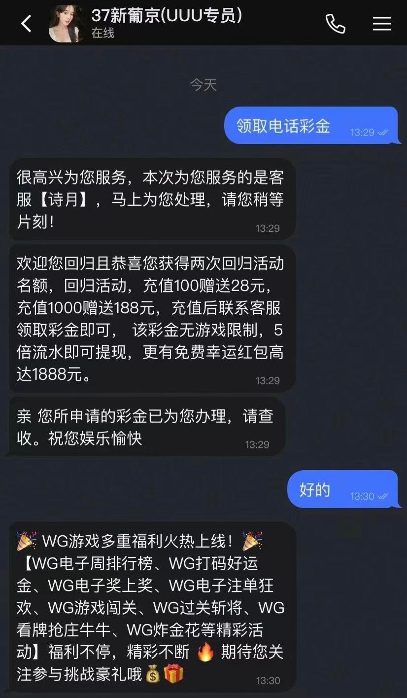 有玩过的老哥去碰瓷一下 另外一个号没接到电话也领到了 网址在广告群葡京37
