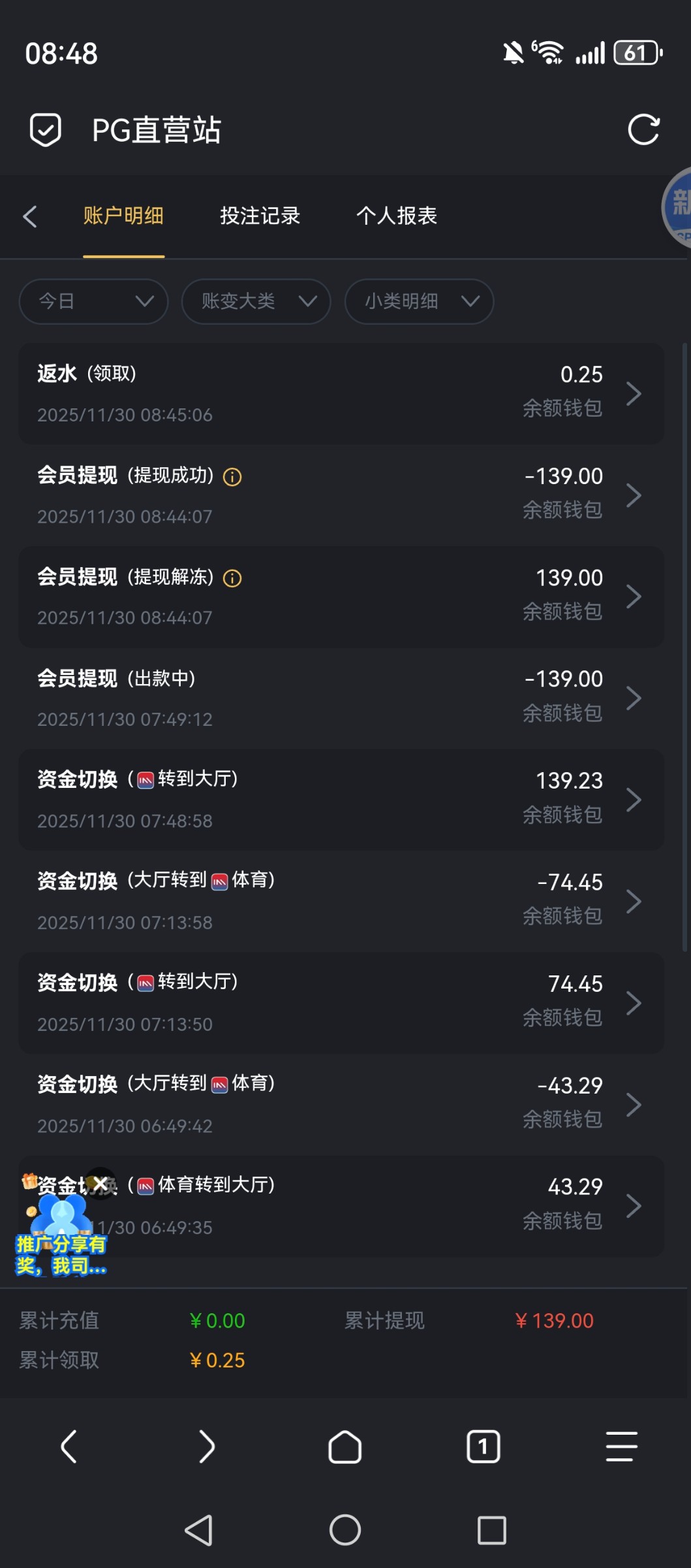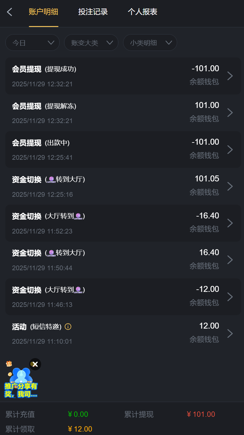 反馈一下,提现到账。