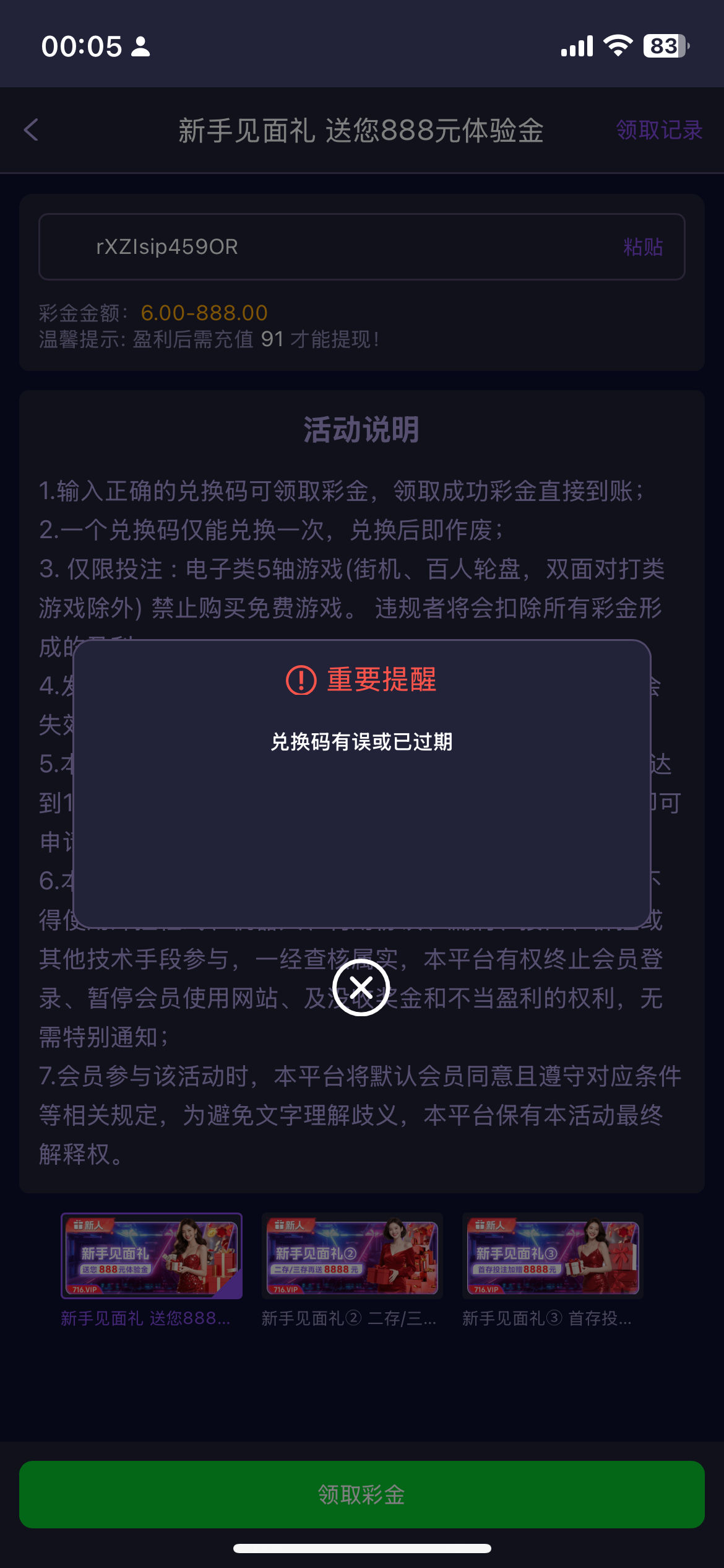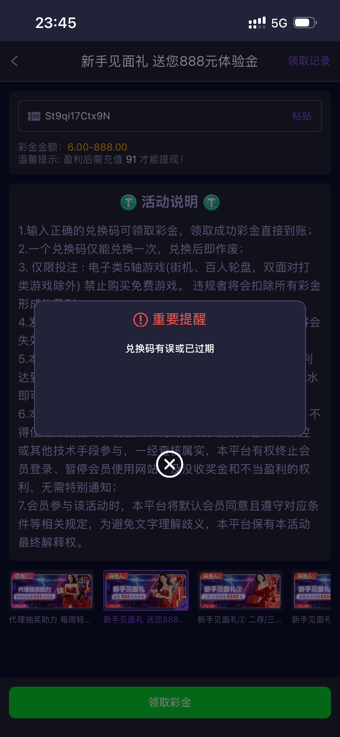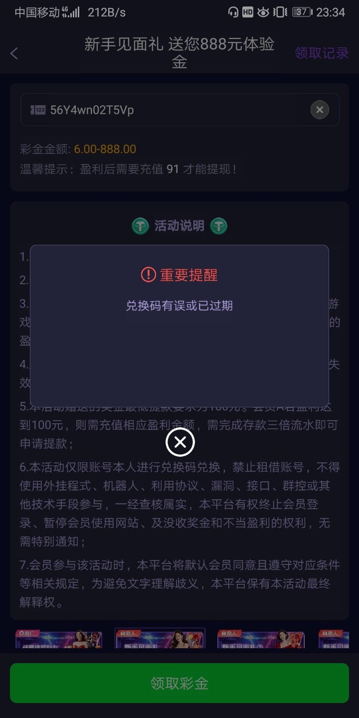 引流台子 主做免费18彩金代码 切勿上头!!彩金18代码 只有200个 没有多的 如果无效就无缘了 自己看清楚在什么地方兑换